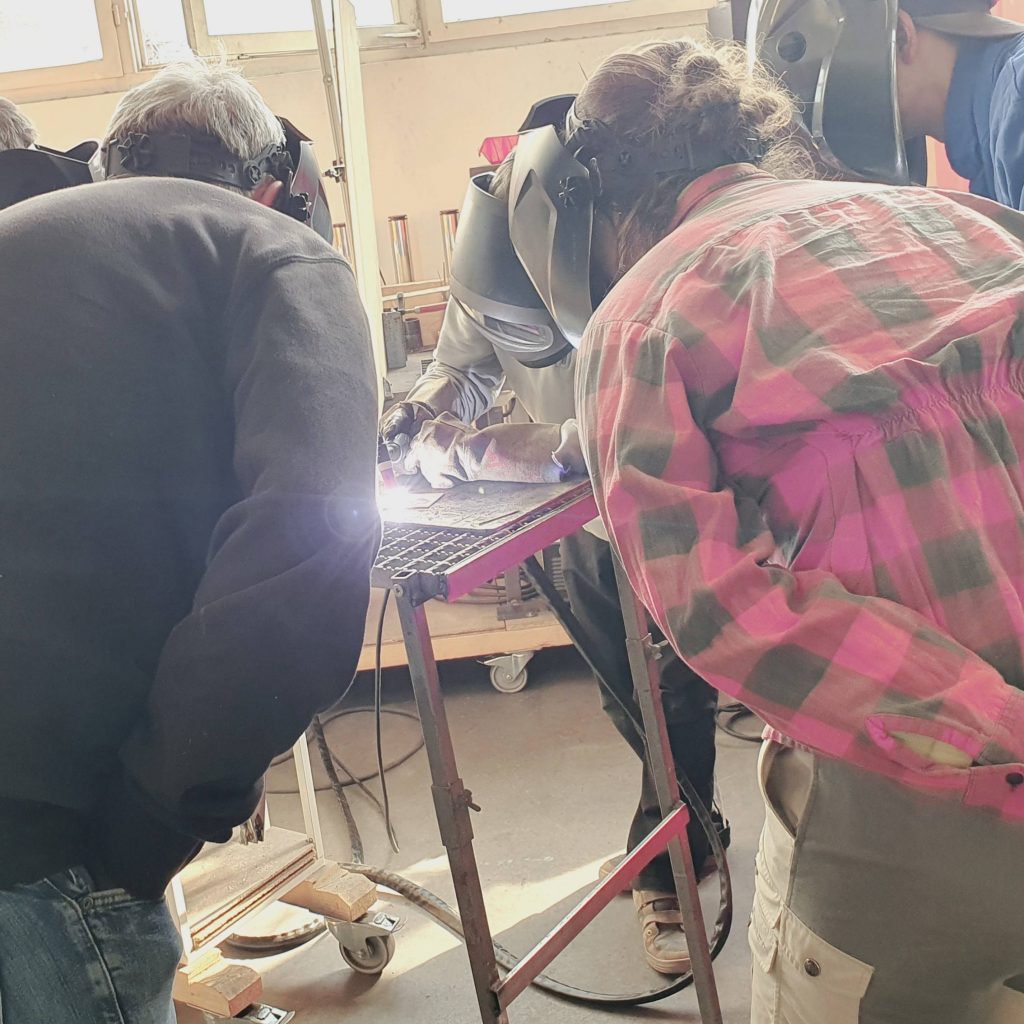 Ich bin bei einem Schweißkurs. Wir sind zu acht. Zwei Frauen und 6 Männer wollen heute lernen, wie man aus zwei Metallteilen, eines entstehen lassen kann.